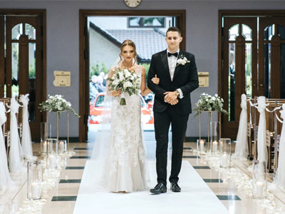 Bukiety ślubne, dekoracje sal i kościołów, butonierki oraz oprawa florystyczna dopasowana do stylu uroczystości.